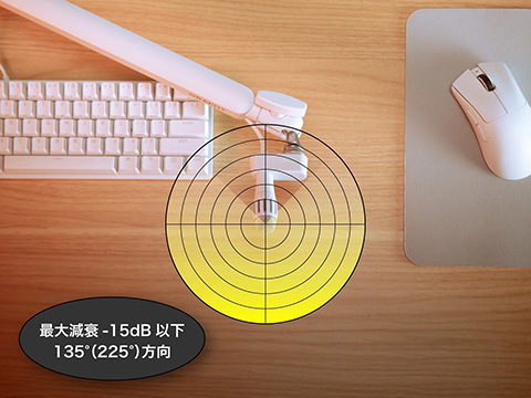 指向特性はハイパーカーディオイド。強力な側面遮音特性で環境ノイズを効果的にカットするとしており、マウスのクリック音やキーボードなどの環境音を大幅に低減するとしている。また、BGMやゲームサウンドと組み合わせてもミックスや調整が行いやすい、自然でクリアな音質を目指して独自のチューニングを施しているとのこと。
