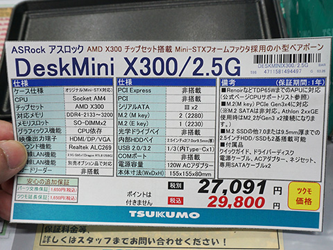 2.5G LANポートを搭載したASRockの小型ベアボーンキット「DeskMini X300/2.5G」(型番:DESKMINI X300/2.5G/B/BB/BOS/JP)が発売された。