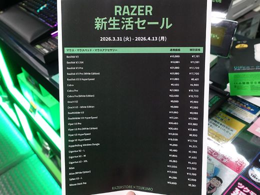 Razer製ゲーミングデバイスがお得に購入できる「新生活セール」が31日(火)より開催。