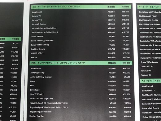 | キーボード・左手用パッド | Huntsman V3 Pro Tenkeyless JP | 24,700円 |