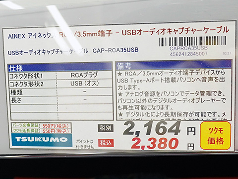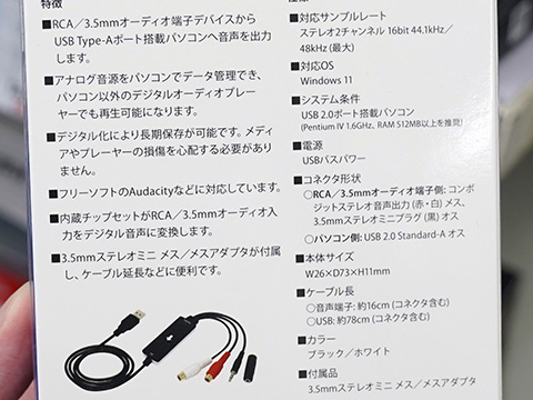 レコードやカセットのアナログ音源をデジタル化できるケーブル「CAP-RCA35USB」がアイネックスから