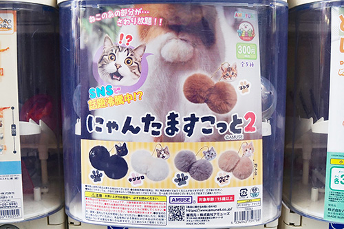 「ねこのあの部分が…さわり放題!!」なマスコットチャームなど、アキバで見かけたカプセルトイ