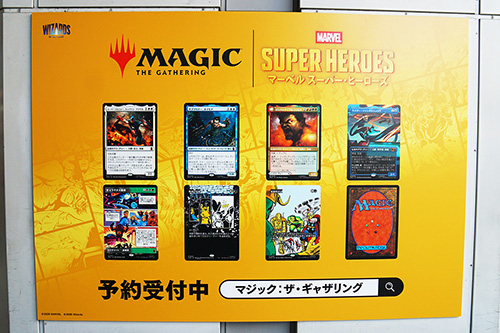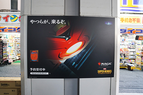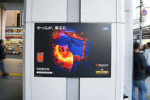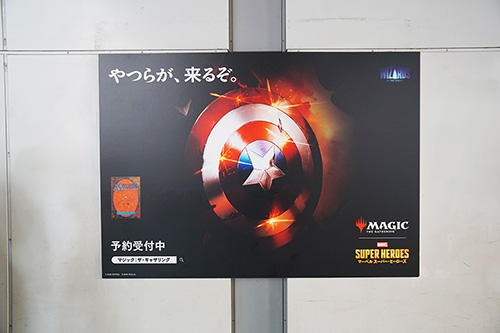 JR秋葉原駅の昭和通り口を出た先の柱に、「マジック:ザ・ギャザリング マーベル スーパー・ヒーローズ」の広告が掲載されていました。6月26日(金)発売予定の新パックで、現在予約受付中との事です。