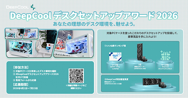 DeepCoolは、同社製のPCケースを対象にしたイベント「DeepCool デスクセットアップアワード2026」を開始した。