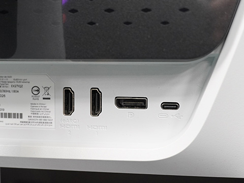 入出力端子がHDMI 2.1×2(内1ポートeARC対応)、DisplayPort 1.4×1で、ヘッドフォン出力も備える。パネルの主な仕様は、表示色が約10.7億色、コントラスト比が1,500,000:1、輝度が300cd/平方メートル(HDR時1,000cd/平方メートル)、視野角が上下左右178°、応答速度が0.3ms(GtG)。