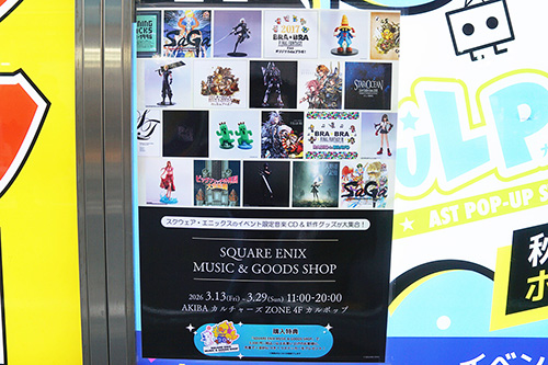 AKIBAカルチャーズZONE 4階のカルポップでは、「SQUARE ENIX MUSIC & GOODS SHOP」を開催。「SQUARE ENIX MUSIC」レーベルのサウンドトラックや、グッズなどが販売されていました。