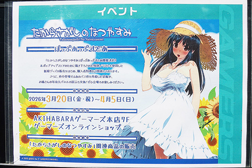 AKIHABARAゲーマーズ本店の7階では、「ノーゲームノーライフ」ポップアップストアと「幼馴染とはラブコメにならない」ポップアップストアが開催。5階では「たからさがしのなつやすみ」ポップアップストアが開催されていました。いずれも期間は4月5日(日)まで。
