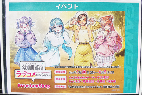 ボークス秋葉原ホビー天国2の1階では、「幼馴染とはラブコメにならない」ポップアップストアが開催。6階では、「きゃらON!AJ前夜祭・後夜祭」が開催されていました。いずれも期間は4月5日(日)まで。