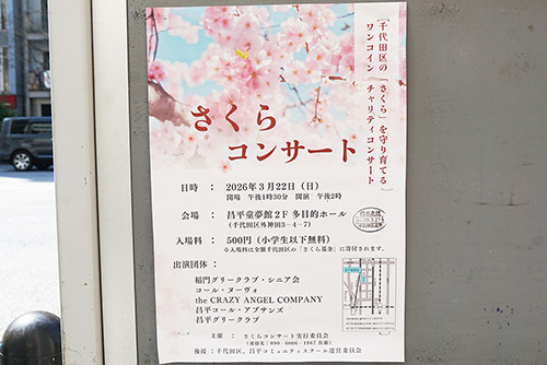 千代田区からのお知らせに、昌平童夢館で3月22日に開催されるチャリティコンサート「さくらコンサート」の告知が掲載されていました。