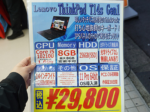 第10世代Core i5やタッチ対応液晶搭載の「ThinkPad T14s Gen1」が29,800円、中古品セール