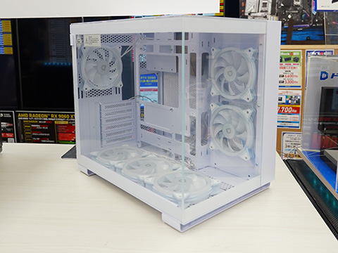 これらは、本体サイズ(W×D×H)が295×415×368mmのPCケース。デュアルチャンバー仕様で、前面左部分に支柱がない「ピラーレス構造」を採用する。