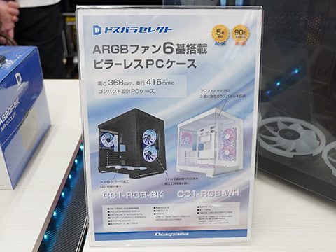 デュアルチャンバー構造を採用したピラーレスデザインのPCケース「CC1-RGB」がドスパラセレクトから発売された。本体カラーの違いでブラック(CC1-RGB-BK)とホワイト(CC1-RGB-WH)の2種類が用意されている。