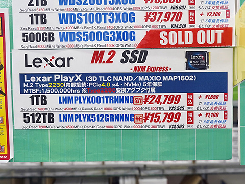 LexarのM.2 Type 2230 SSD「PLAY X」シリーズが一部ショップに入荷している。