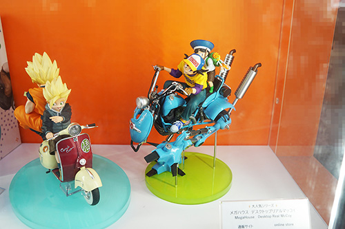 COMIC ZIN 秋葉原店の店頭に設置されているあみあみのショーケース内で、「メガハウス デスクトップリアルマッコイ」シリーズが展示されていました。ドラゴンボールの扉絵などを再現した人気のシリーズで、見ごたえのあるフィギュアとなっています。