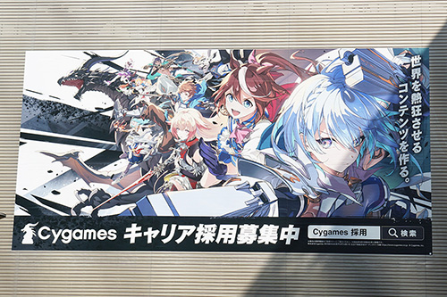 駅前の大型広告が「株式会社Cygames」のキャリア採用募集に