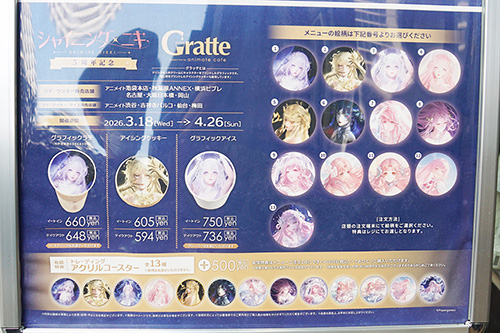 アニメイト秋葉原ANNEX内のアニメイトカフェグラッテでは、「シャイニングニキ」の5周年を記念したコラボメニューが販売されていました。販売期間は4月26日(日)まで。