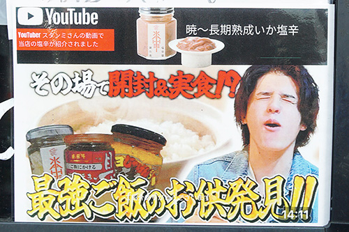 動画の企画は日本百貨店しょくひんかん内で「最強ごはんのお供」を炊き立てのごはんを持参して探すといったもので、数あるご飯のお供から同店の塩辛が選出されていました。