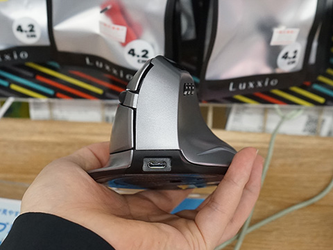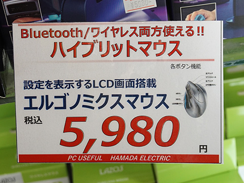 握手するような角度で握れるというエアリアのワイヤレスマウス「ErgoVerMouse/SD-F26」が浜田電機に入荷。上部にLCDを搭載しバッテリー残量などの確認が可能。