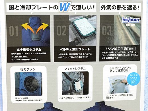 旧モデルと同様、USB PD給電の対応や作業服メーカー ビッグボーンと共同開発したという遮熱性を高める裏地のチタン加工などを継承する。