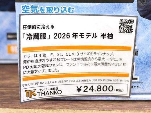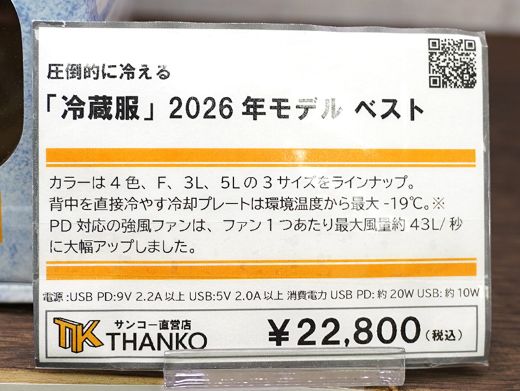 サンコーの新作冷却ウェア「圧倒的に冷える『冷蔵服』2026年モデル」が発売された。
