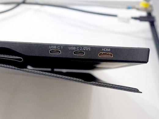 映像入力ポートとしてMini HDMIとUSB Type-C×2を備え、USB電源(PD 15W)で動作する。3.5mmステレオミニジャックに加えて、1W+1Wスピーカーを備えるのも特徴。