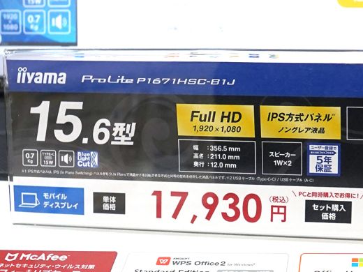 iiyamaの15.6インチモバイルモニター「ProLite P1671HSC-B1J」が店頭入荷