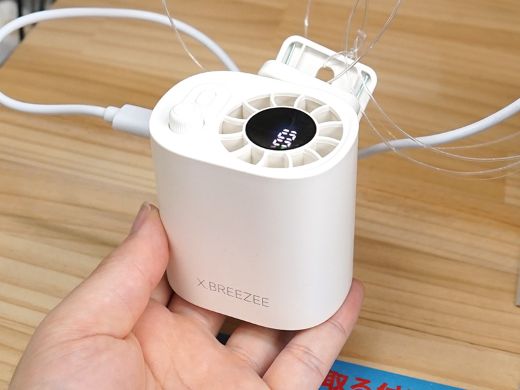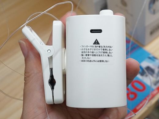 背面にクリップを備えたポータブルファン。ベルトやリュック(厚み2~20mm)、パイプ(直径8~15mm)などに取り付けてハンズフリーで使えるとしている。