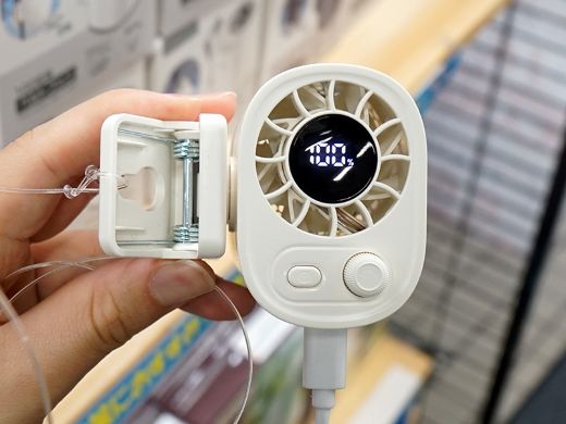 ベルトに装着できるコンパクトなポータブルファン「100段階ベルトファン」が、浜田電機に入荷。
