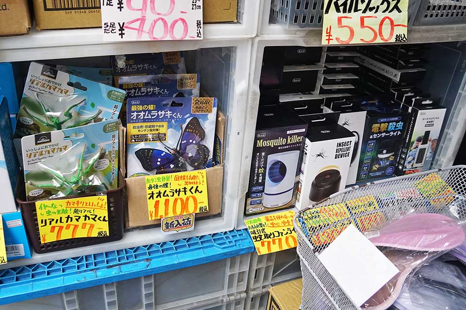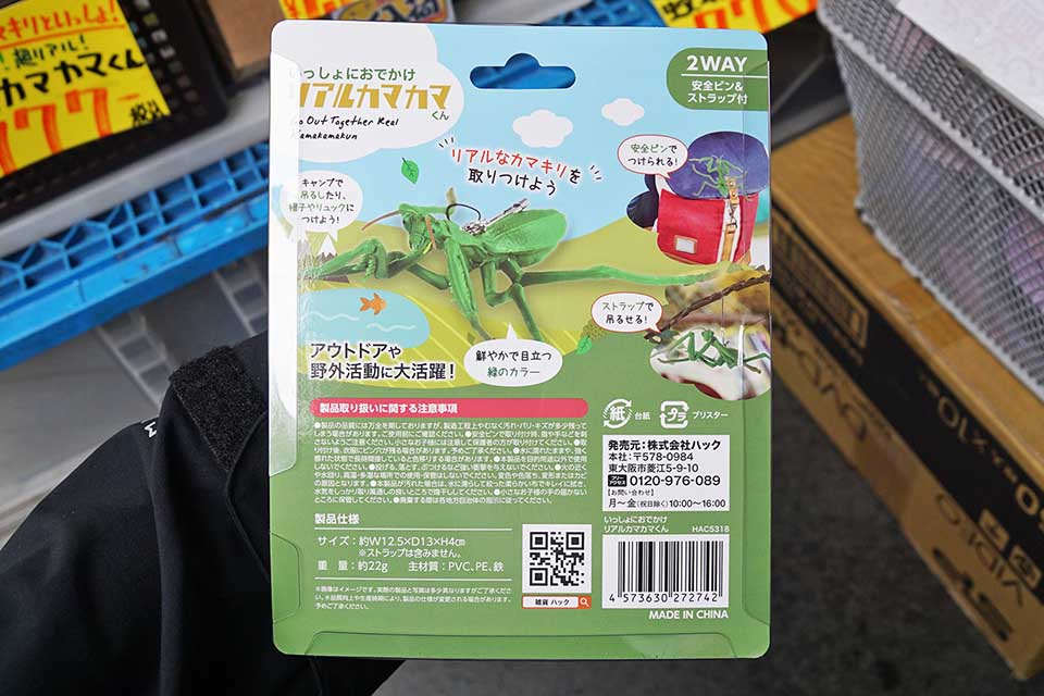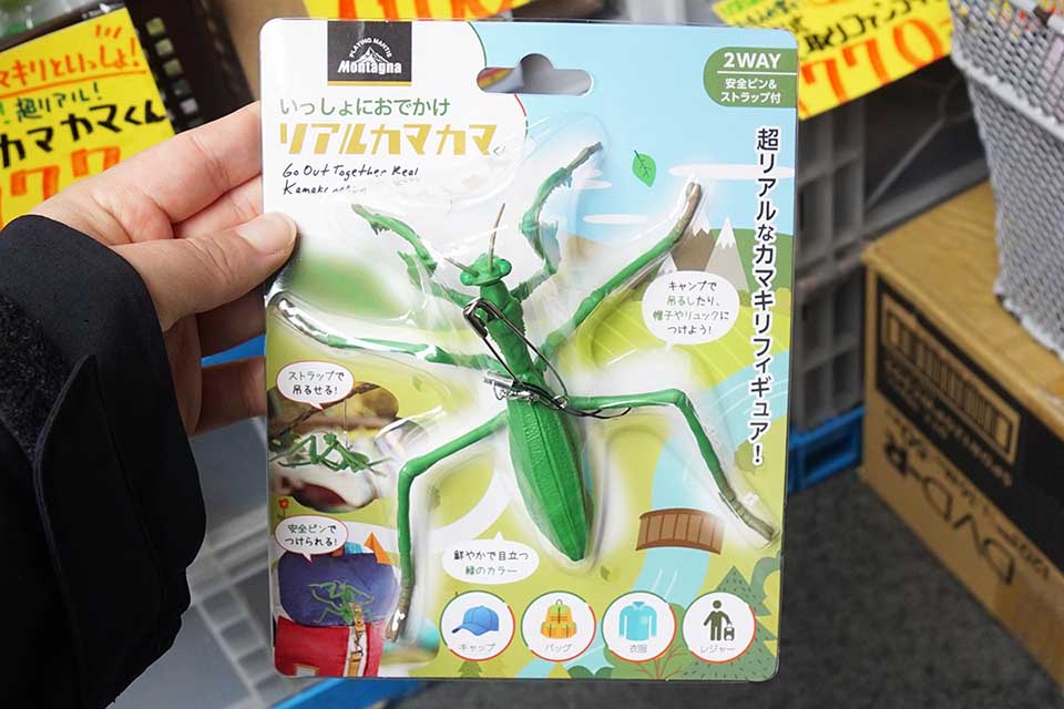 あきばお~弐號店では、「いっしょにおでかけリアルカマカマくん」などの虫よけアイテムが多数販売されていました。気温上がり窓を空けてると虫が入ってきたりする時期になってきたので、こういった虫よけアイテムで対策を講じるのもよいかもしれませんね。
