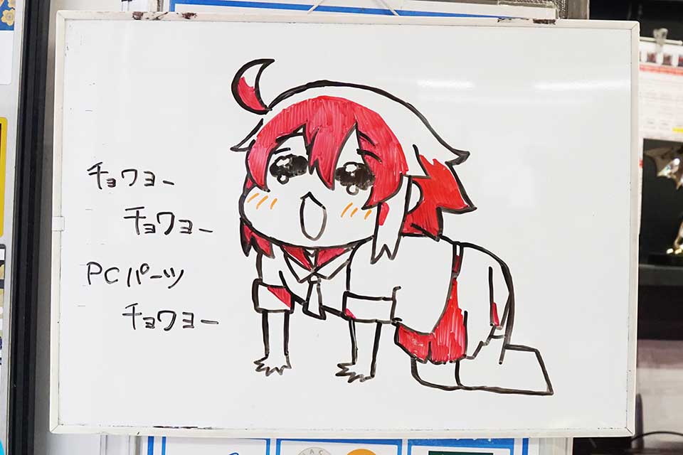 パソコンショップアークの店頭ホワイトボードが更新。「トリッカル・もちもちほっペ大作戦」に登場するスピキのようなアク子が描かれていました。ちなみに韓国語の「チョワヨ」は日本語に訳すと「好き」や「良い」といった好意的な意味の表現となります。