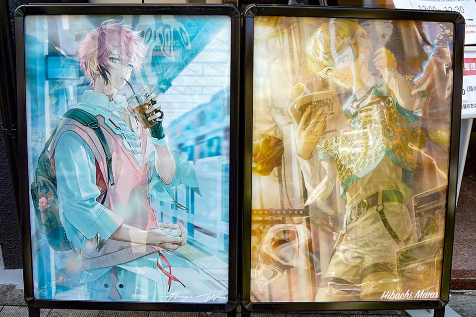 音アニ1号店では、VTuberグループ「にじさんじ」コラボワイヤレスイヤホンの店頭展示・受注販売が行われていました。ONKYOの完全ワイヤレスイヤホン「ANIMA AOW04」とコラボレーションしたモデルとなっています。