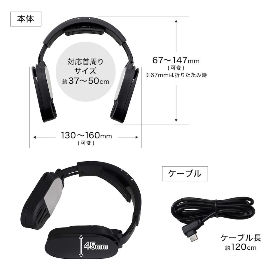 本体サイズは最小時が130×45×67mm、最大が160×45×147mm。付属のUSBケーブル長は120cm。