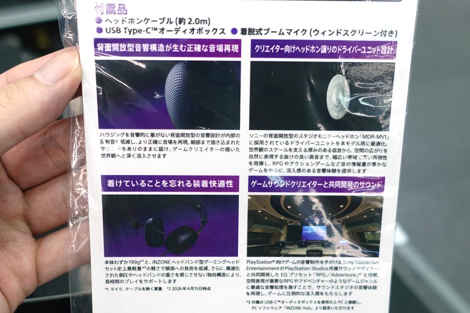 PlayStation Studios所属サウンドデザイナーと共同開発したEQプリセット「RPG/Adventure」を搭載。サウンドスタジオの音響体験を再現し、ゲームに圧倒的な没入感をもたらす。同EQプリセットは付属のUSB-Cオーディオボックスを使用することなどで設定できる。