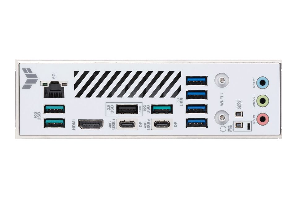 背面インターフェイスはUSB4×2、USB 10Gbps×3、USB 5Gbps×4、USB 2.0×1、Realtek 5GbE LAN、Wi-Fi 7(Realtek RTL8922AE)、Bluetooth 5.4、HDMI×1、音声入出力。