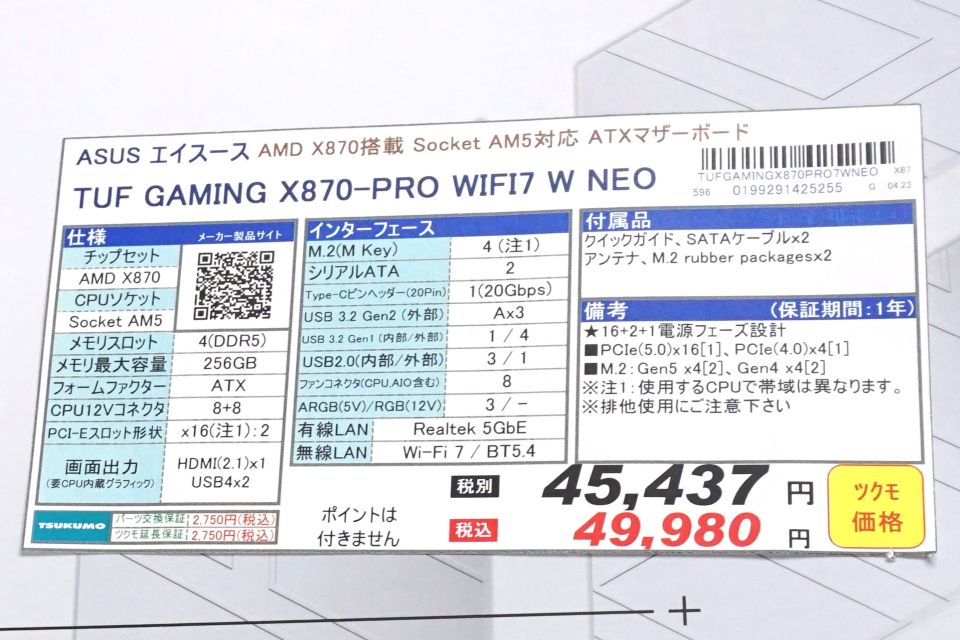 ASUSの白いRyzen 9000対応マザー「TUF GAMING X870-PRO WIFI7 W NEO」が登場