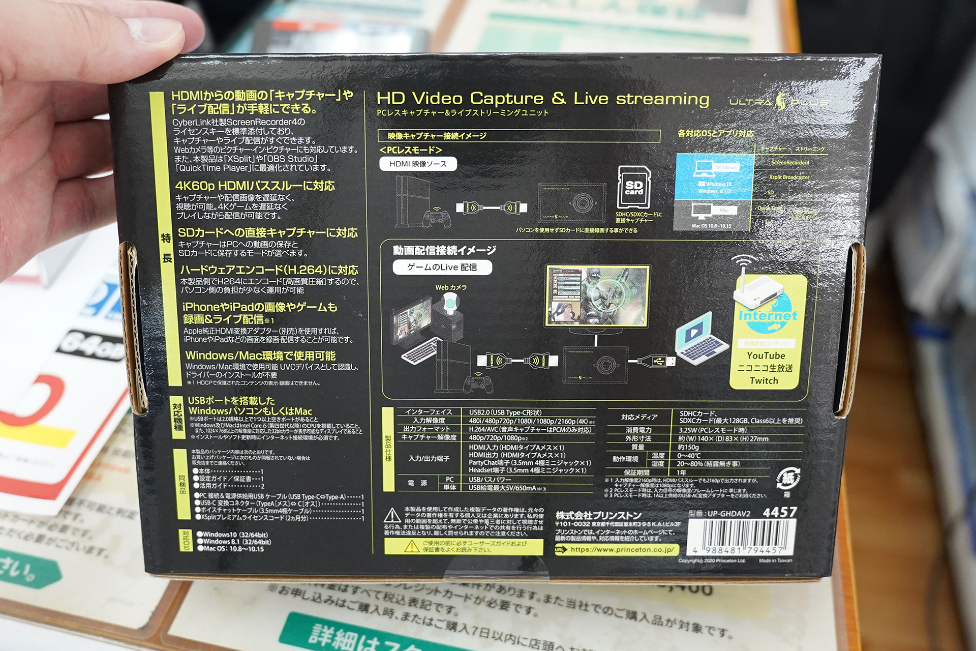 PCレスで録画できるハードウェアエンコード(H.264/AAC)対応のHDMIキャプチャユニット「UP-GHDAV2」の新品が、じゃんぱら秋葉原5号店などじゃんぱら各店でセール中。