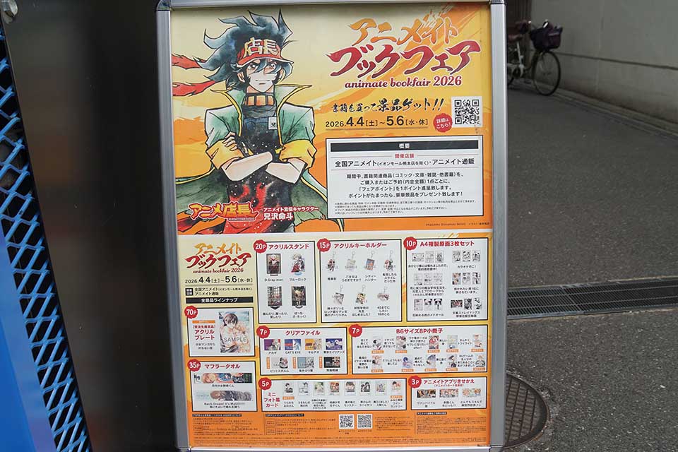 アニメイト秋葉原では、「アニメイトブックフェア2026」が開催されていました。アニメイトでの買い物でフェアポイントが貯まり、貯まったポイントを限定グッズと交換可能。また、完全受注生産の記念グッズなども多数登場しています。開催期間は5月6日(水・休)まで。