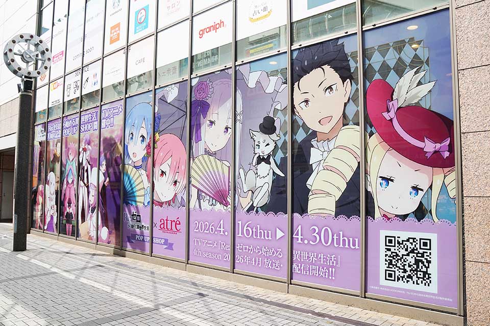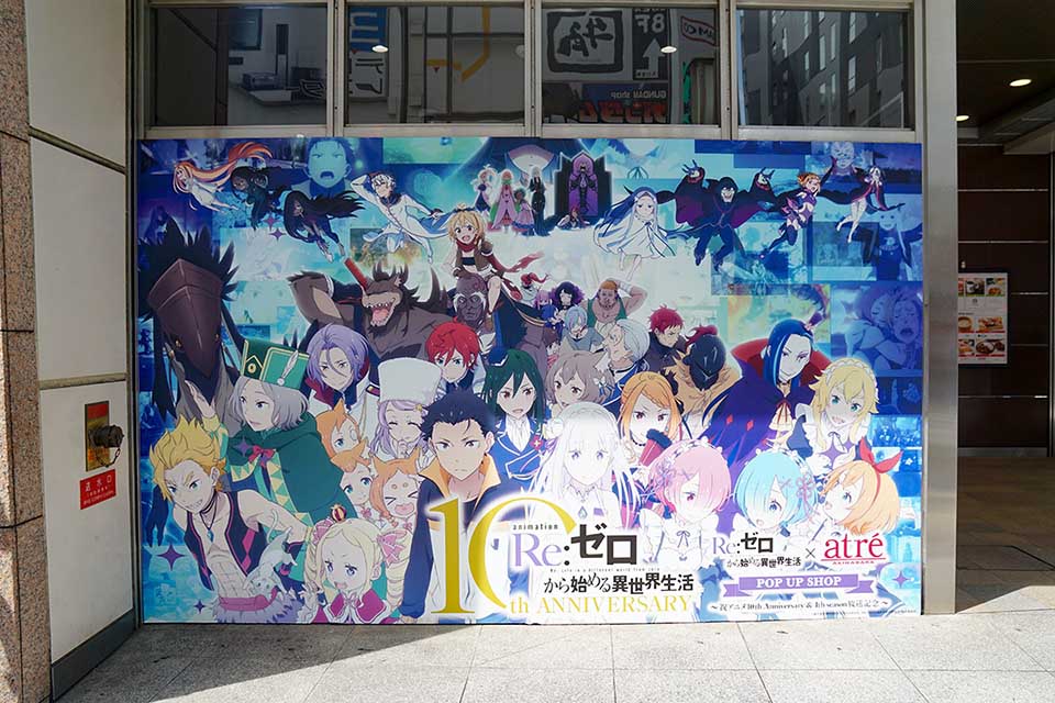 アトレ秋葉原では、「Re:ゼロから始める異世界生活 × アトレ秋葉原 POP UP SHOP~祝アニメ10th Anniversary & 4th season 放送記念~」が開催されていました。壁面広告の展開のほか、館内ではグッズ販売やキャンペーンを実施。開催期間は4月30日(木)まで。