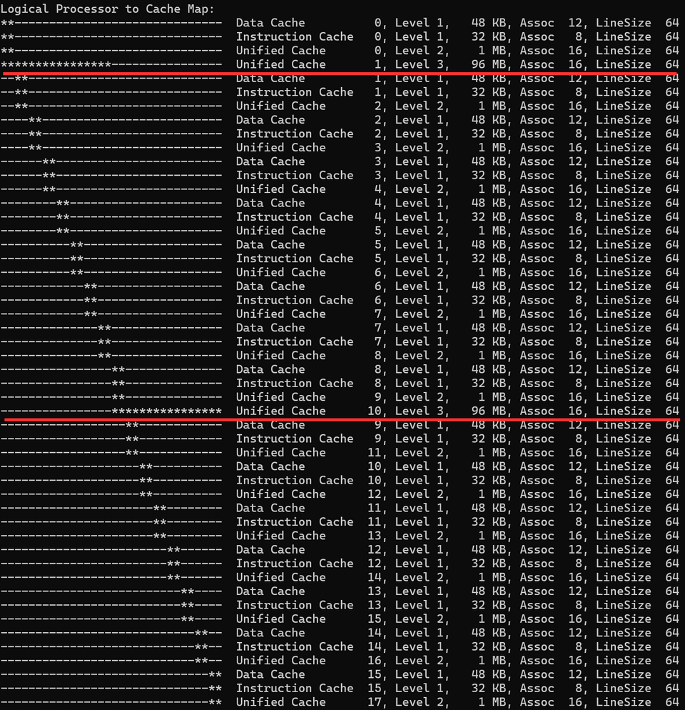 これらのヒートマップから分かるとおり、Ryzen 9 9950X3D2の構造は従来と変わっておらず、3D V-Cacheをデュアルにしたところで構造的な弱点(CCDをまたぐとレイテンシーが激増する)は克服できていない。これを解決するには3D V-Cache技術自体がCCD間をブリッジするように進化せねばならないが、現状のキャッシュ制御技術ではそこまでの実装は難しいのかもしれない(し、AMDならこの程度のアイデアは既に試しているだろう)。