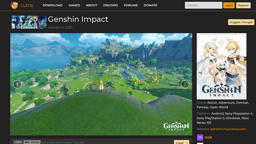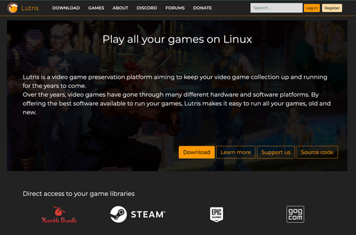 Steam以外の配信サービス(Epic GamesやGOGなど)でしか配信されていないゲームの情報を調べたい場合は「Lutris」を参照するのがよい。