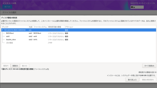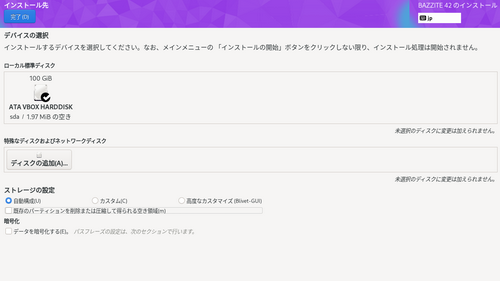 これより解説する手順はBazziteをインストールするドライブの領域すべてをBazziteに割り当てる前提で解説している。少しPCのことを知るとデュアルブートに挑戦したくなるが、それは予後の悪い茨の道である。どうしてもWindowsも試したいなら、物理的にドライブを分け、BIOSの起動デバイス選択で切り替えることを強く推奨したい。