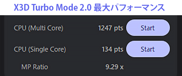 初代のX3D Turbo Modeは、SMTをオフにしてゲーム関連の処理を3D V-Cacheを搭載するCCD側だけに割り振るなど、ゲーム向けに動作を最適化する機能でしたが、X3D Turbo Mode 2.0では、ゲーム以外にもクリエイター用途でもX3D系のCPUの性能を引き出すものに改良されています。
