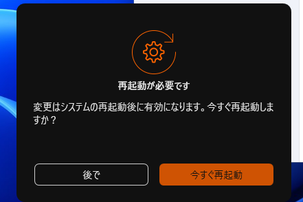 ユーティリティから設定を変更すると再起動を促すダイアログが表示され、再起動後に設定が反映される仕組み。再起動の手間はかかりますが、BIOSに入って設定を変更する手間は省けます。