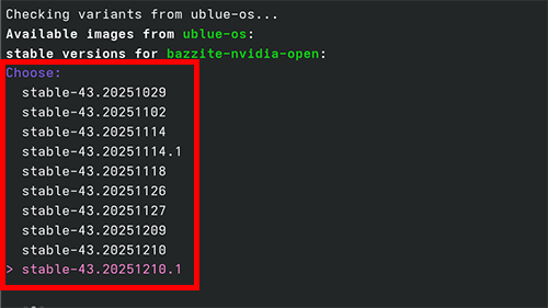 Rebaseする際は利用しているデスクトップ環境と同じものを選ぶという点も忘れてはならない。KDE版Bazziteを使っているならGnome版BazziteへのRebaseはできない、ということになる。GUIを入れ換える場合はデータをバックアップしBazziteを再セットアップするのが推奨される。
