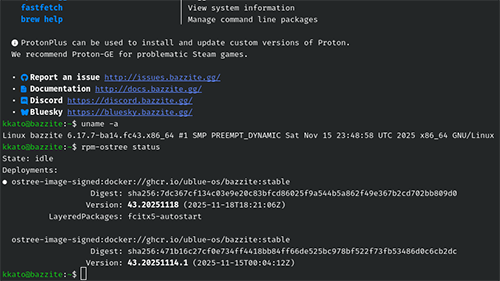 Bazziteの特徴はOSイメージにGPUドライバが含まれていることにある。ここで問題になるのはGPUをアップグレードした場合だ。たとえばRadeonのRX 5060からRX 9070にアップグレードした場合、同じAMD向けイメージでサポートされるため特に何かをする必要はない。AMD用のイメージはRX 400番台から最新のRX 9000番台までカバーしているので、同じイメージがそのまま利用できるからだ。Windows向けドライバーではRX 9000番台は別のブランチになっているが、Linux用ドライバは同じドライバで通用するからだ。