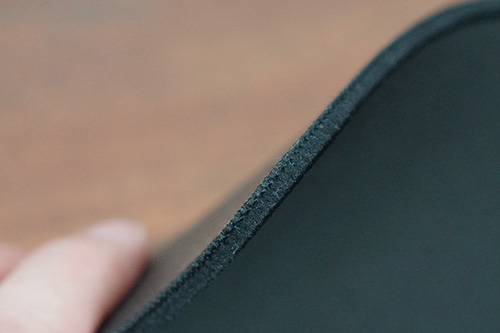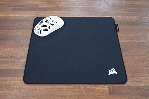 厚さ4mmの布製マウスパッドで、サイズはMedium(320× 300mm)とLarge(450 ×400mm)の2種類、カラーはブラックとグレーの2色をラインアップ。今回レビューで使用したのは、Mediumサイズのブラックだ。