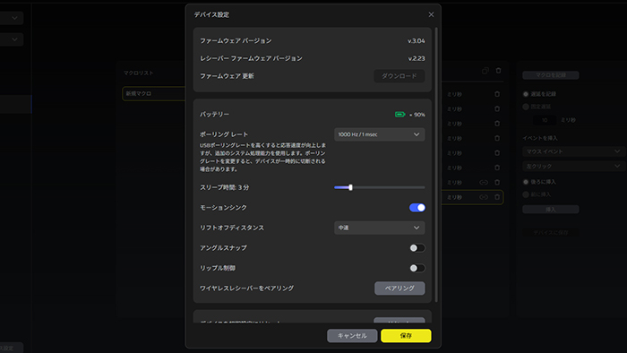 ブラウザ上で設定した内容は本体内蔵メモリに保存される。設定情報がマウス側にあるのでオフライン大会などでも使いやすい。また、設定を変更したくなった時もブラウザが使えればどこでも再設定が可能と、競技向けらしい仕様になっている。
