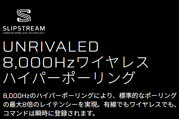バッテリー駆動時間は、2.4GHzワイヤレス接続でポーリングレート1,000Hz時に最大120時間、2.4GHzワイヤレス接続でポーリングレート8,000Hz時は最大21時間。