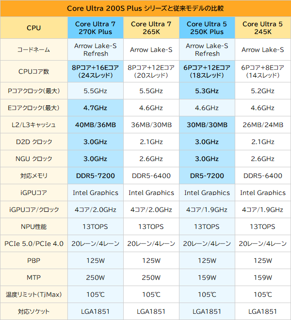 Arrow Lake-Sを強化した新CPU「Core Ultra 200S Plus」
