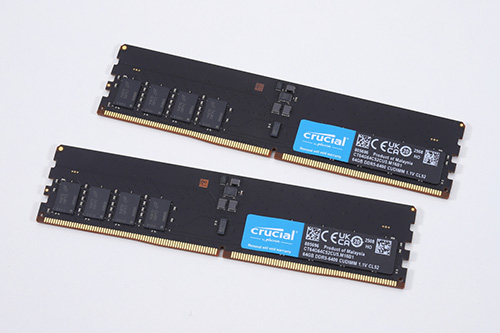 そこで、対応BIOSが提供されているASUSのIntel Z890チップセット搭載マザーボード「ROG MAXIMUS Z890 HERO」を用意。メモリは新旧どちらのCPUでも定格仕様内で使えるCrucialのDDR5-6400(JEDEC)対応64GB CUDIMM×2枚組「CT2K64G64C52CU5」を搭載し、テスト環境を構築することにした。